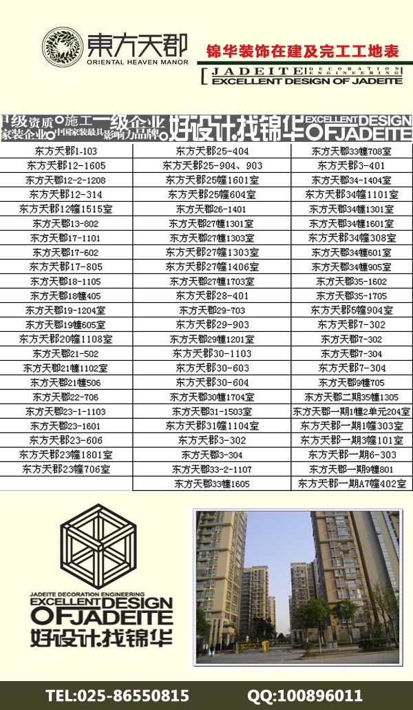 為了更好的讓東方天郡的業(yè)主了解錦華裝飾的整個工藝流程,錦華裝飾仙林片區(qū)分公司整理了所有東方天郡的完工及在建工地,歡迎大家來參觀。