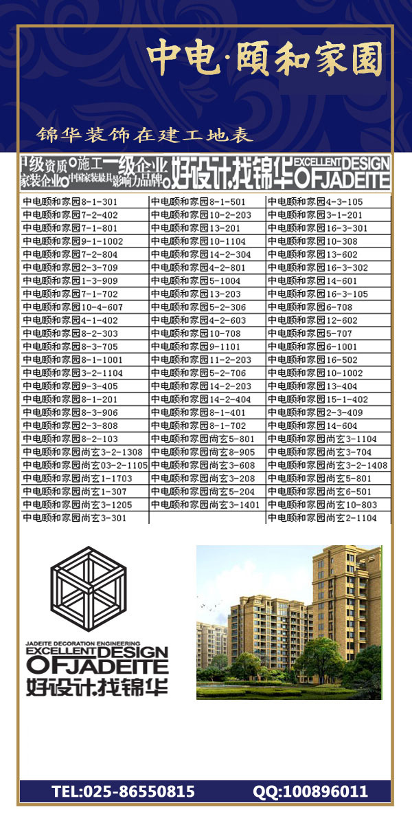 為了更好的讓中電頤和家園的業(yè)主了解錦華裝飾的整個(gè)工藝流程,錦華裝飾鼓北片區(qū)分公司整理了所有中電頤和家園的完工及在建工地,歡迎大家來參觀。