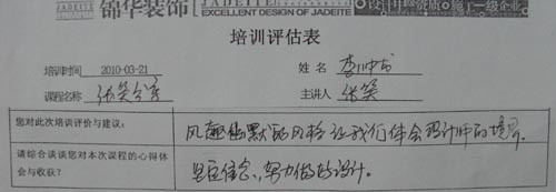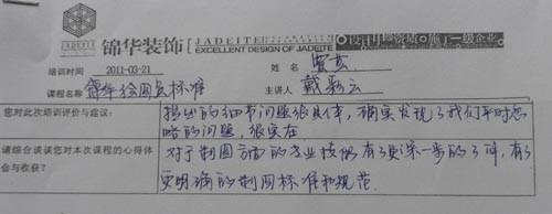 3月21日,公司在所有在編繪圖員和部分有潛力的實習(xí)生范圍中召開了一場繪圖員培訓(xùn)。本次培訓(xùn)由人力資源部牽頭,首先邀請了研發(fā)中心戴彩云老師對繪圖員的制圖規(guī)范和標(biāo)準(zhǔn)做了講解,對每季度繪圖員上繳作品情況也做了案例分析,其次是安排了主任設(shè)計師崔堯、高級設(shè)計師單清和堂杰工作室首席設(shè)計師張笑做了培訓(xùn)分享。最后由人力資源包總闡述了設(shè)計部儲備人才的“雛鷹計劃”的具體實施步驟及考核方案。優(yōu)秀的繪圖員作為錦華內(nèi)部的設(shè)計師儲備人員,將會在錦華這個優(yōu)秀的平臺上得以平穩(wěn)成長,錦華需要的是有志向、有方法、有心態(tài)的務(wù)實性人才,只要踏實認(rèn)真一步一個腳印的遵循公司的成長體系,相信,“雛鷹”終將會成長為一只在錦華天空中自由翱翔“雄鷹”!