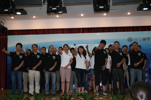這次股東大會上,錦華的金牌培訓(xùn)師——主材部曹總,給大家?guī)砹巳齻€拓展游戲:五張撲克大小PK、模仿不走樣、數(shù)數(shù)字;帶來現(xiàn)場歡樂的同時,讓所有的人都學(xué)會反思和總結(jié);團(tuán)隊(duì)的精神得到充分的體現(xiàn)?;窗卜止镜氖袌鼋?jīng)理王志波說,“在南京大區(qū),感受到了溫暖,有了回家的感覺。”這就是集體精神的魅力所在。
