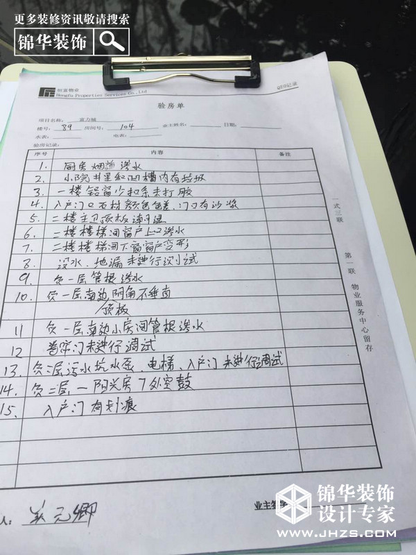 本次驗房,我們的工作人員針對房屋的水電,墻面,頂面,地面進(jìn)行了詳細(xì)的檢查,并給出書面報告,為業(yè)主提供專業(yè)的房屋問題解決方案和建議。希望讓廣大富力業(yè)主在裝修前把房屋問題全面解決