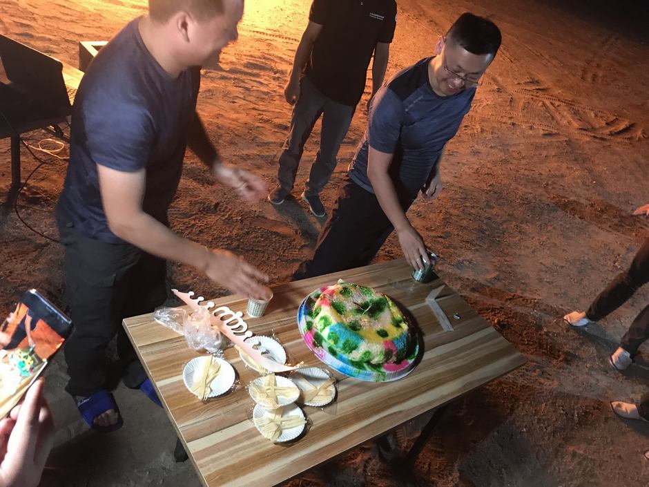 ▲恰逢劉總與陳總的生日,借著夜晚的篝火,給兩位過上了一個(gè)非常難忘的生日