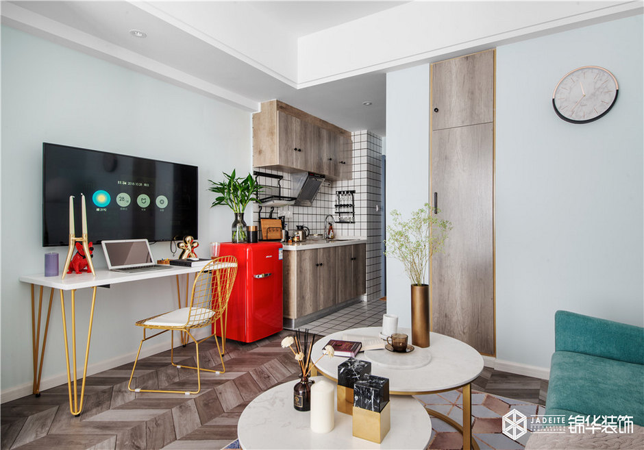 雖然本案是一個只有50平的公寓,但該有的功能全部具備,比如大型綜合儲物柜、全景書房、觀景飄窗閱讀臺、強大功能的廚房。