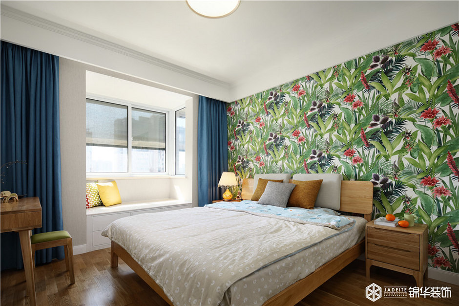 ▲綠色調(diào)的背景墻讓素雅的空間充滿活力,夢中好似也彌漫著自然味道!