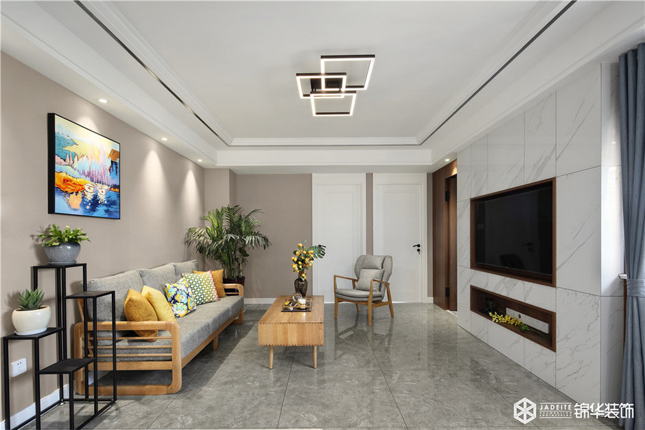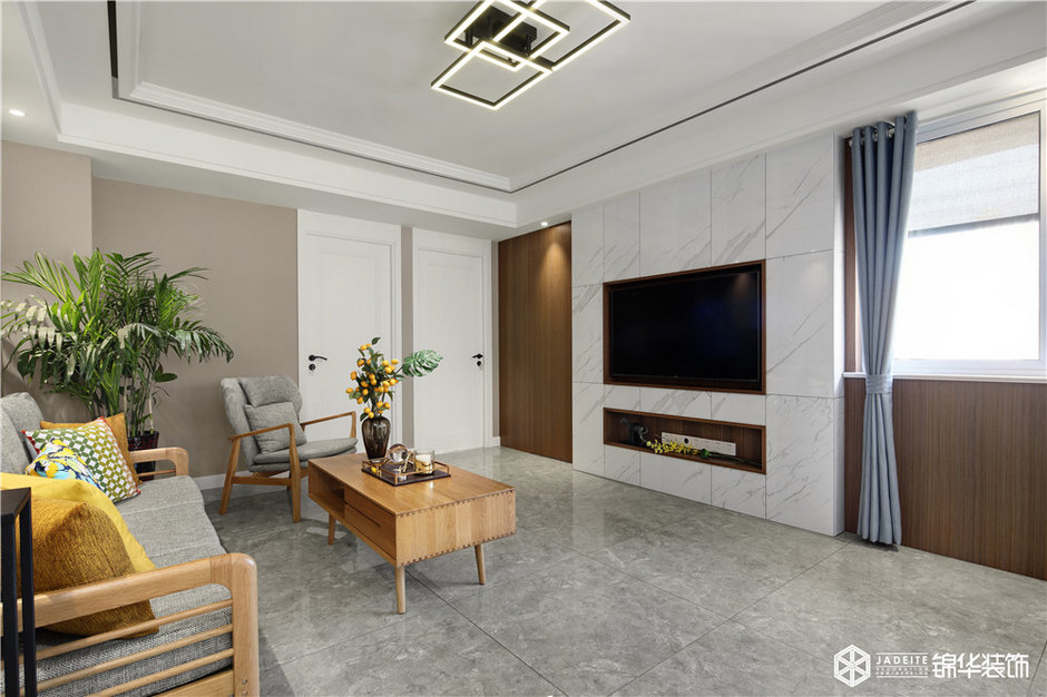 ▲客廳大面積使用木飾面板作為背景,干凈簡潔又不失質(zhì)感!
