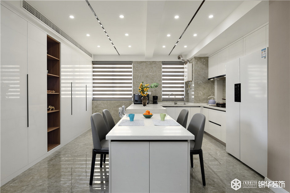 ▲把廚房改造成開放式的,與餐廳結(jié)合一體,這樣同樣的的空間下,可以多出一組收納柜子,更實用!