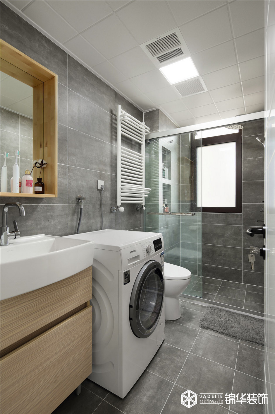 ▲衛(wèi)生間雖然不大,但設(shè)計師還是做了簡單的干濕分離,同時還能放下洗衣機!