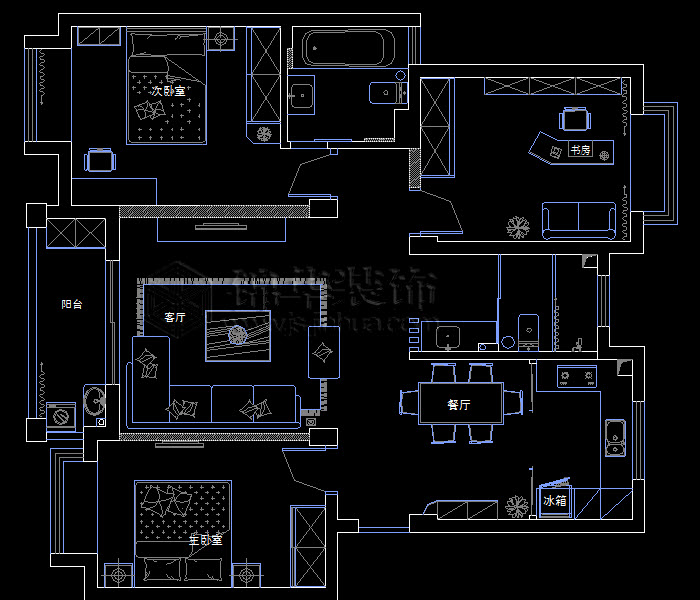 1,客廳,房間無墻體,設(shè)計空間靈活。